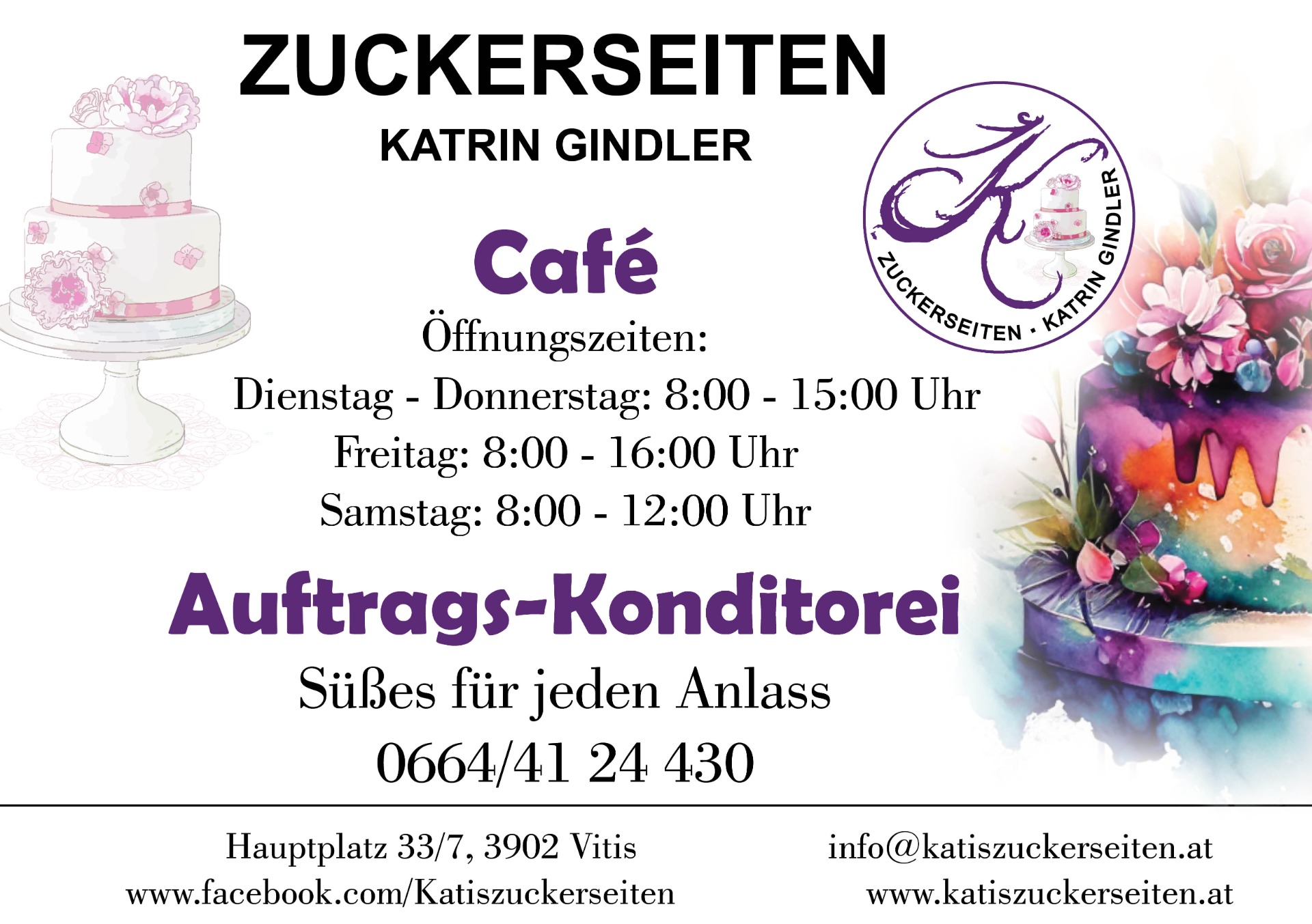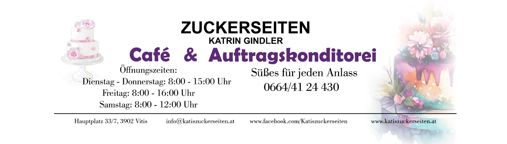 In Vitis, Hauptplatz 33/7, eröffne ich mein eigenes Café mit integrierter Auftragskonditorei.